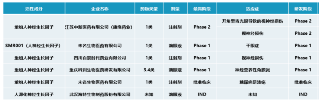 从全球范围内,康缘药业/中新医药在布局重组人神经生长因子(rhNGF)都是比较前沿的,处于国内第一的位置,开了两个适应症的临床,分别是青光眼、视神经损伤。